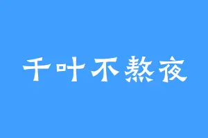 千叶不熬夜